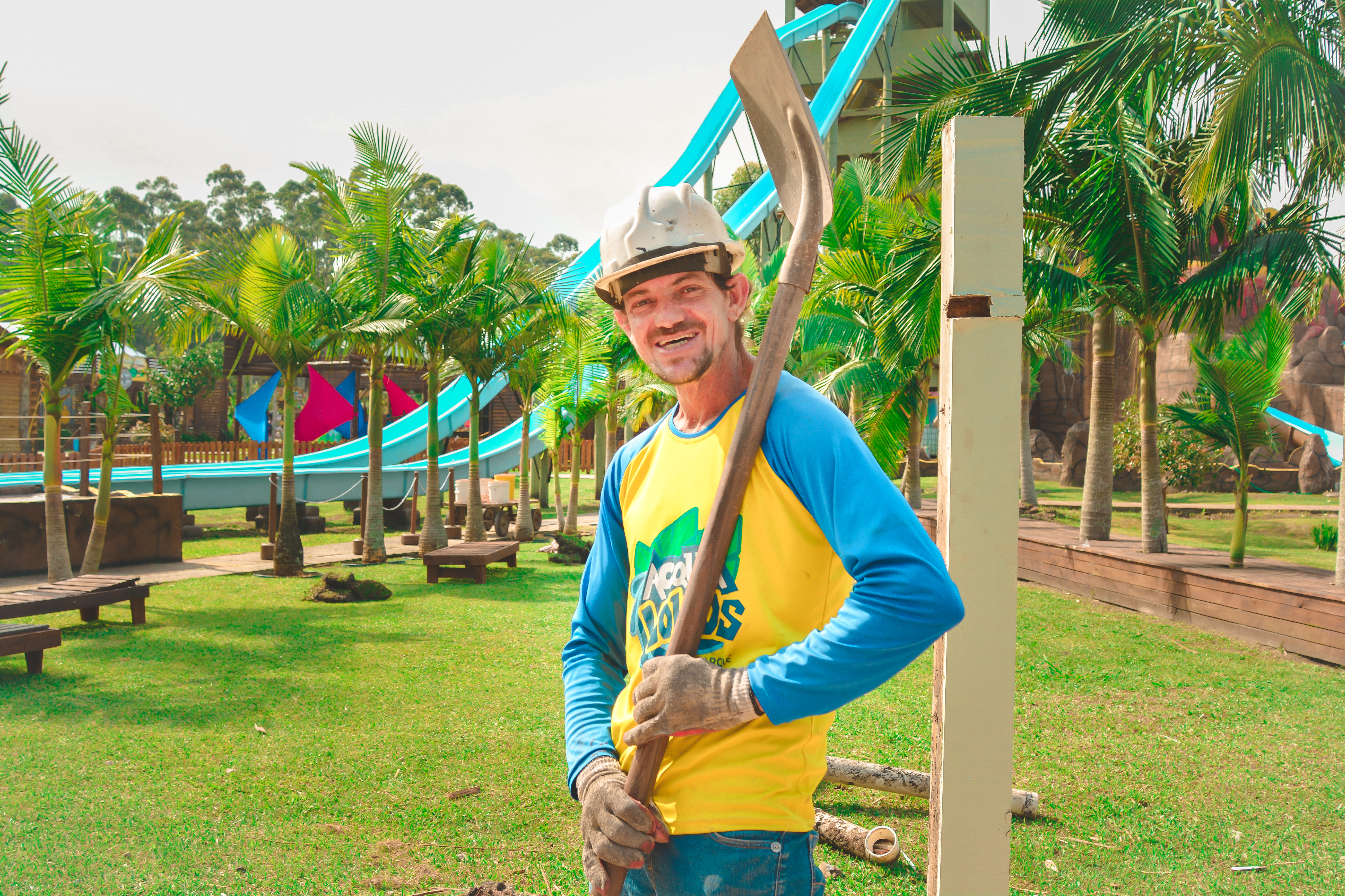 Nascido em Goiás, em todos os verões Fábio vinha para o Rio Grande do Sul vender roupas na beira da praia. Foi assim por muitos anos até que, em 2007, resolveu ficar de vez. Em 2012 fez uma entrevista, atrás de uma oportunidade. Começou na Temporada Verão, como Auxiliar de Serviços Gerais e Monitor de Brinquedos. Voltou na temporada seguinte, para trabalhar na Fazendinha, cuidando dos animais. E assim foi sua história por alguns anos até que, em 2018, foi contratado. “O Acqua Lokos é uma maravilha, o sonho de qualquer colaborador. Desde os 12 anos, Fábio tinha o desejo de trabalhar em um Parque Aquático. “Eu ia para o clube da minha cidade juntar garrafa, só pra poder entrar e tomar banho de piscina. Acreditava que um dia estaria empregado num lugar assim, e hoje eu consegui”, comemora. Fábio vê sua disponibilidade e disposição como um diferencial. Além disso, sabe da confiança creditada a ele no momento de sua contratação e se empenha ao máximo, pois sabe o quanto essa oportunidade é importante. Para ele, nada – nem ninguém – é mais especial do que os clientes.