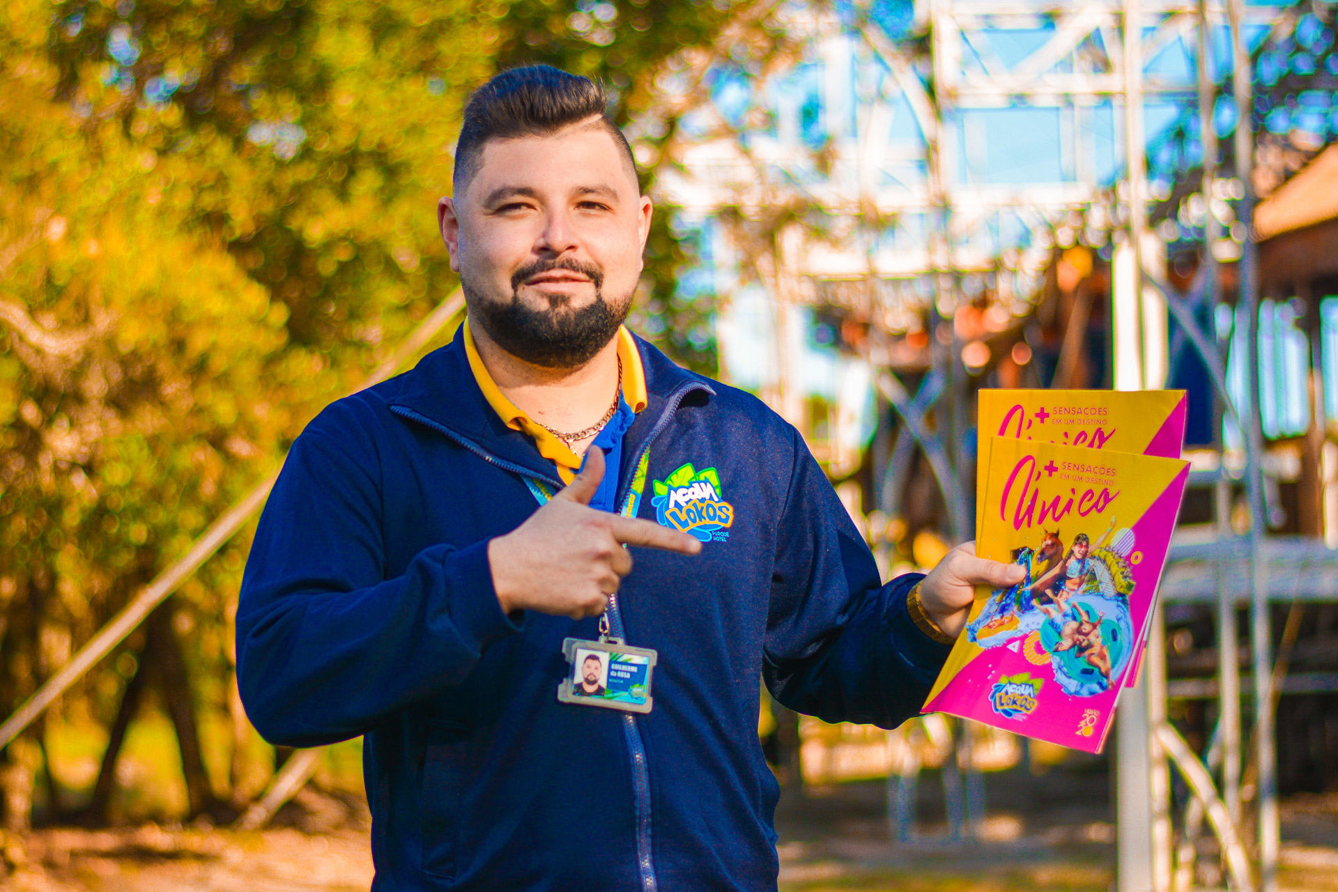 Um anúncio no Instagram. Foi assim, por meio de uma postagem em rede social, que o Guilherme Ribeiro ficou sabendo de uma vaga para trabalhar no Acqua Lokos. Ele começou como Monitor, no fim da Temporada Inverno 2019. E ficou. Ao fim do Verão, foi convidado a trabalhar na área de Vendas, dentro do Parque. “Eu saía oferecendo o passaporte anual aos clientes que estavam aqui. A alegria do Parque me contagia e ajuda a vender”. É por essa habilidade em fazer contato e conquistar a confiança de novas parceiros que Guilherme, hoje Promotor de Vendas do segmento Agências Prospects, vem ajudando a transformar o Acqua Lokos em um lugar de oportunidade para que outras empresas possam crescer juntas.